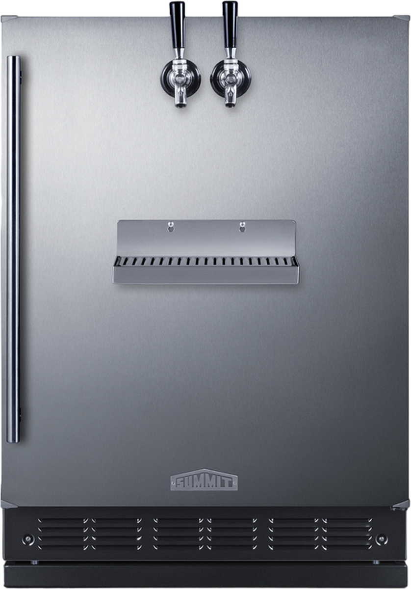 The SBC7BRSFRTPADA is unique because the twin taps are accessed via the unit's front door. The specialized design frees up valuable counter space in kitchens, home bars, and eateries with limited room. The kegerator can be installed under a counter without the need to modify the countertop with a hole for the draft tower. The front tap system also creates a more accessible kegerator experience. This kegerator ships fully assembled and includes a removable stainless steel drip tray that mounts on the door below the taps. Its commercial grade tower has two faucets serving beer from two 1/6 (sixtel) kegs. We also include a CO2 tank, regulator, and all the equipment you need to confidently serve perfectly chilled beer on tap.
